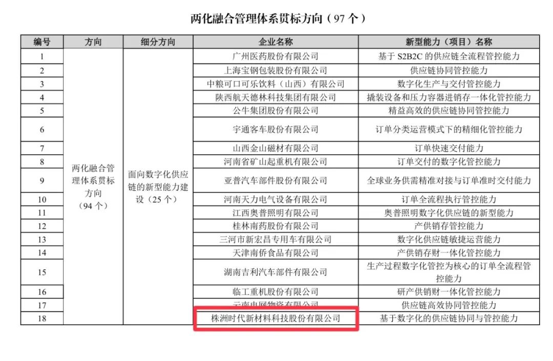 該名單聚焦“數(shù)字領(lǐng)航”企業(yè)、兩化融合管理體系貫標(biāo)和特色專業(yè)型工業(yè)互聯(lián)網(wǎng)平臺三個方向,旨在推動新一代信息技術(shù)與制造業(yè)全要素、全產(chǎn)業(yè)鏈、全價值鏈深度融合,加快制造業(yè)技術(shù)、模式、業(yè)態(tài)等創(chuàng)新和應(yīng)用,探索形成可復(fù)制、可推廣的新業(yè)態(tài)和新模式,為制造業(yè)數(shù)字化轉(zhuǎn)型賦能。據(jù)悉,時代新材(600458)是株洲市唯一入選兩化融合管理體系貫標(biāo)方向的企業(yè)。