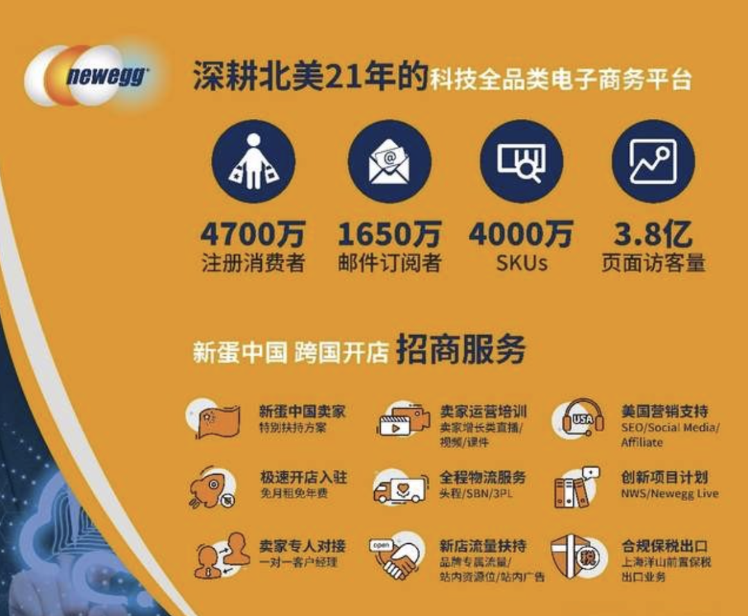 新蛋是北美最受歡迎的科技類電子商務(wù)平臺(tái)之一,為全球超過4700萬高端消費(fèi)者提供豐富的消費(fèi)電子、智能家居、戶外運(yùn)動(dòng)、辦公家電等全品類商品。近年來,新蛋為中國企業(yè)量身定制一條龍的跨境電商服務(wù),積極與地方政府、協(xié)會(huì)、高校、企業(yè)展開合作,為中國企業(yè)和杰出品牌提供全方位的跨境出海解決方案??梢灶A(yù)見,這樣一家既有國際領(lǐng)先的物流服務(wù)和專業(yè)平臺(tái)資源,又能立足中國本土市場需求,助力多個(gè)中國知名企業(yè)成功出海的跨境電商平臺(tái),也將在新的一年里迎來前所未有的發(fā)展機(jī)遇。