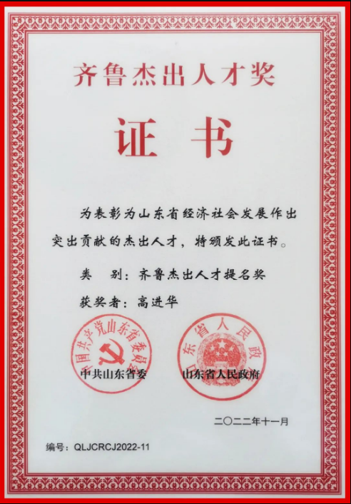 “齊魯杰出人才獎”