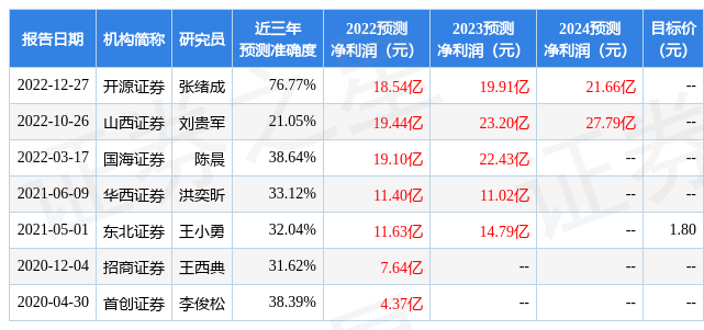 數(shù)據(jù)中心根據(jù)近三年發(fā)布的研報(bào)數(shù)據(jù)計(jì)算,開源證券張緒成研究員團(tuán)隊(duì)對(duì)該股研究較為深入,近三年預(yù)測(cè)準(zhǔn)確度均值為76.77%,其預(yù)測(cè)2022年度歸屬凈利潤為盈利18.54億,根據(jù)現(xiàn)價(jià)換算的預(yù)測(cè)PE為19.62。