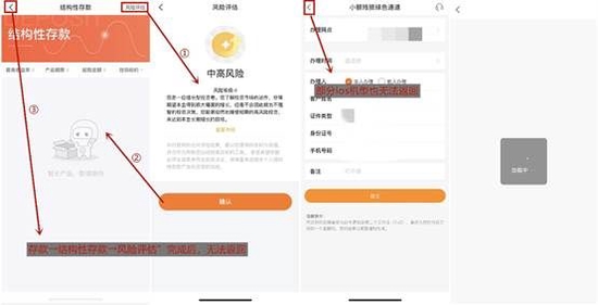 不過,App個(gè)別交互存在bug,只能強(qiáng)制退出App:一是,“存款→結(jié)構(gòu)性存款→風(fēng)險(xiǎn)評估”完成后,無法返回;二是,部分IOS客戶端“網(wǎng)點(diǎn)查詢→小額殘損綠色通道”無法返回。