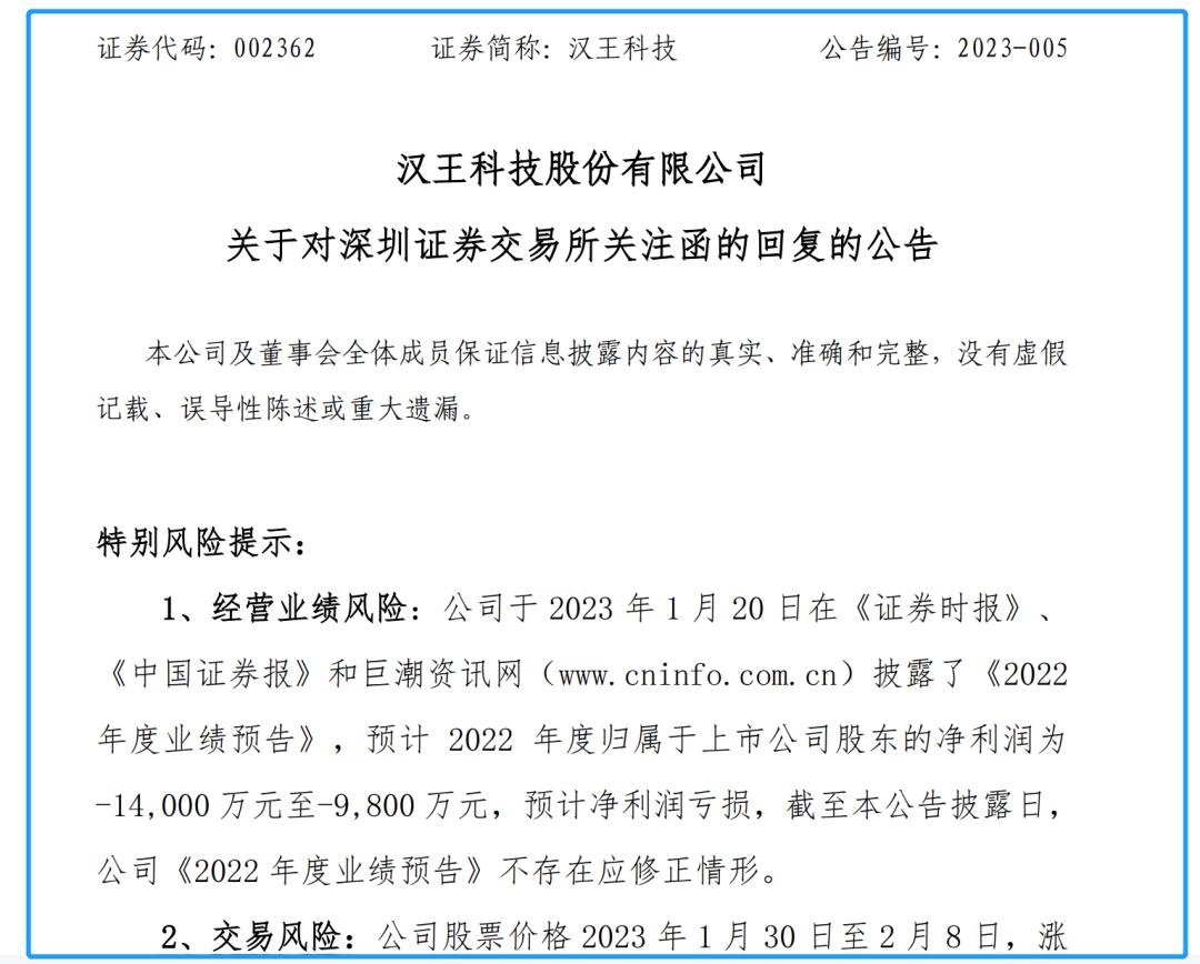 ChatGPT概念仍在資本市場(chǎng)發(fā)酵,2月9日晚,上演“7連板”的漢王科技(002362)(002362),對(duì)此前深交所的關(guān)注函進(jìn)行回復(fù)。