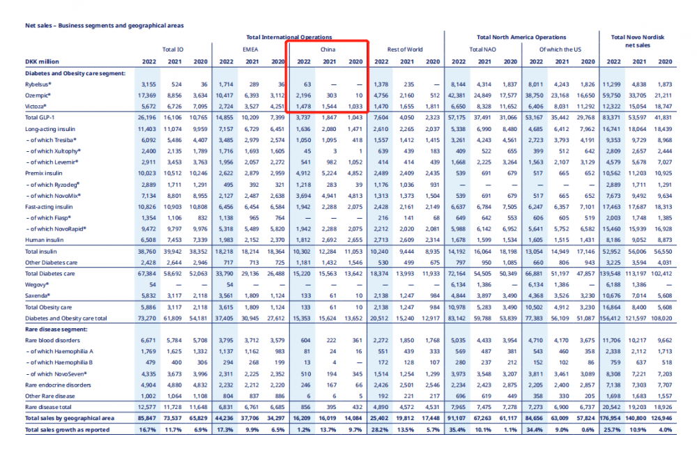2022年內(nèi),諾和諾德司美格魯肽在中國收入達(dá)到21.96億丹麥克朗,約人民幣20.85億元,這還僅是其在中國的第一個(gè)完整銷售年。