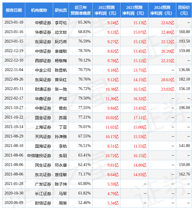 以下是詳細(xì)的盈利預(yù)測信息: