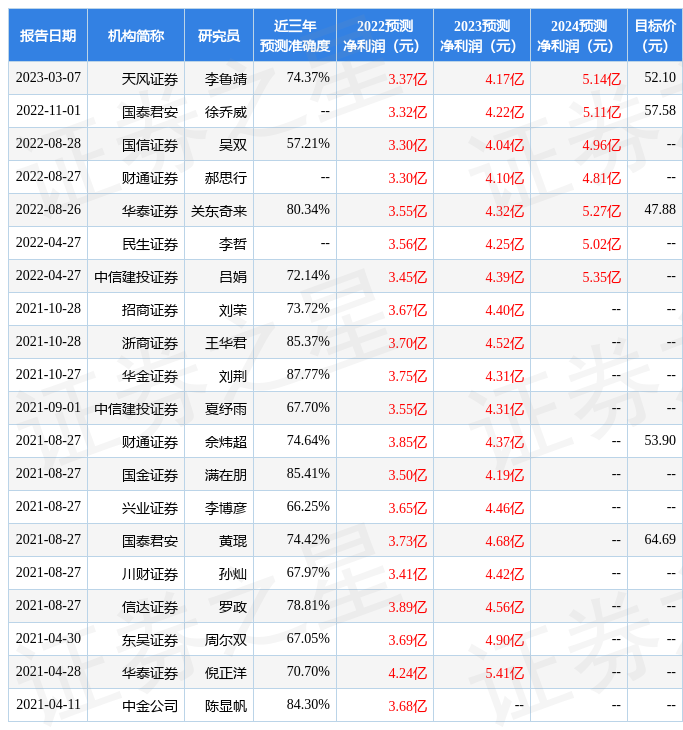 以下是詳細(xì)的盈利預(yù)測(cè)信息: