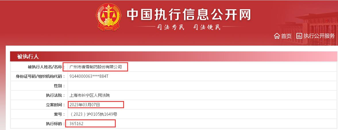 企查查顯示,上述被執(zhí)行信息,所屬司法案件涉及《馳眾廣告有限公司與廣州市香雪制藥股份有限公司廣告合同糾紛的案件》。