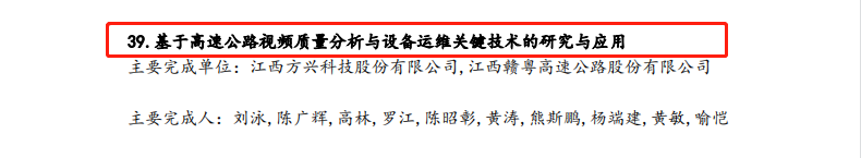 日前,中國公路學會公布了2022年度中國公路學會科學技術(shù)獎獲獎項目名單,由贛粵高速(600269)與方興公司聯(lián)合研發(fā)的“基于高速公路視頻質(zhì)量分析與設(shè)備運維關(guān)鍵技術(shù)的研究與應用”成功入選,并獲得二等獎。