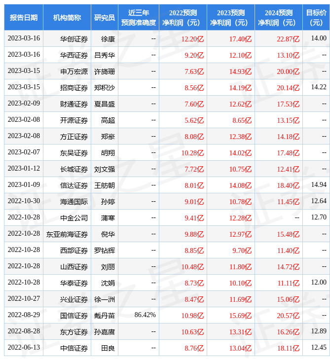 最新盈利預(yù)測(cè)明細(xì)如下: