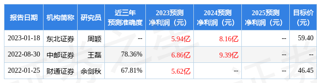 最新盈利預(yù)測明細(xì)如下: