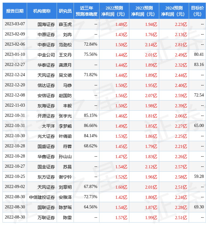 最新盈利預(yù)測(cè)明細(xì)如下: