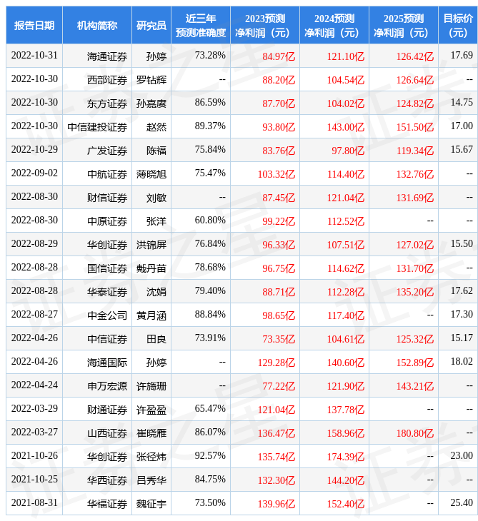 數(shù)據(jù)中心根據(jù)近三年發(fā)布的研報(bào)數(shù)據(jù)計(jì)算,華創(chuàng)證券張徑煒研究員團(tuán)隊(duì)對(duì)該股研究較為深入,近三年預(yù)測(cè)準(zhǔn)確度均值高達(dá)92.57%,其預(yù)測(cè)2023年度歸屬凈利潤(rùn)為盈利135.74億,根據(jù)現(xiàn)價(jià)換算的預(yù)測(cè)PE為8.9。