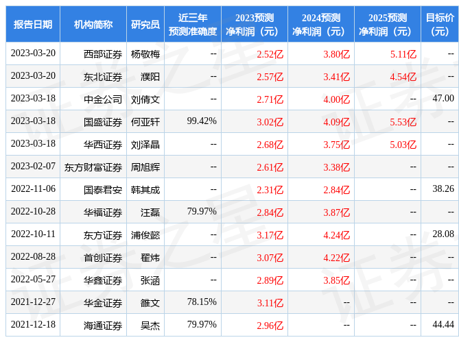 最新盈利預(yù)測(cè)明細(xì)如下: