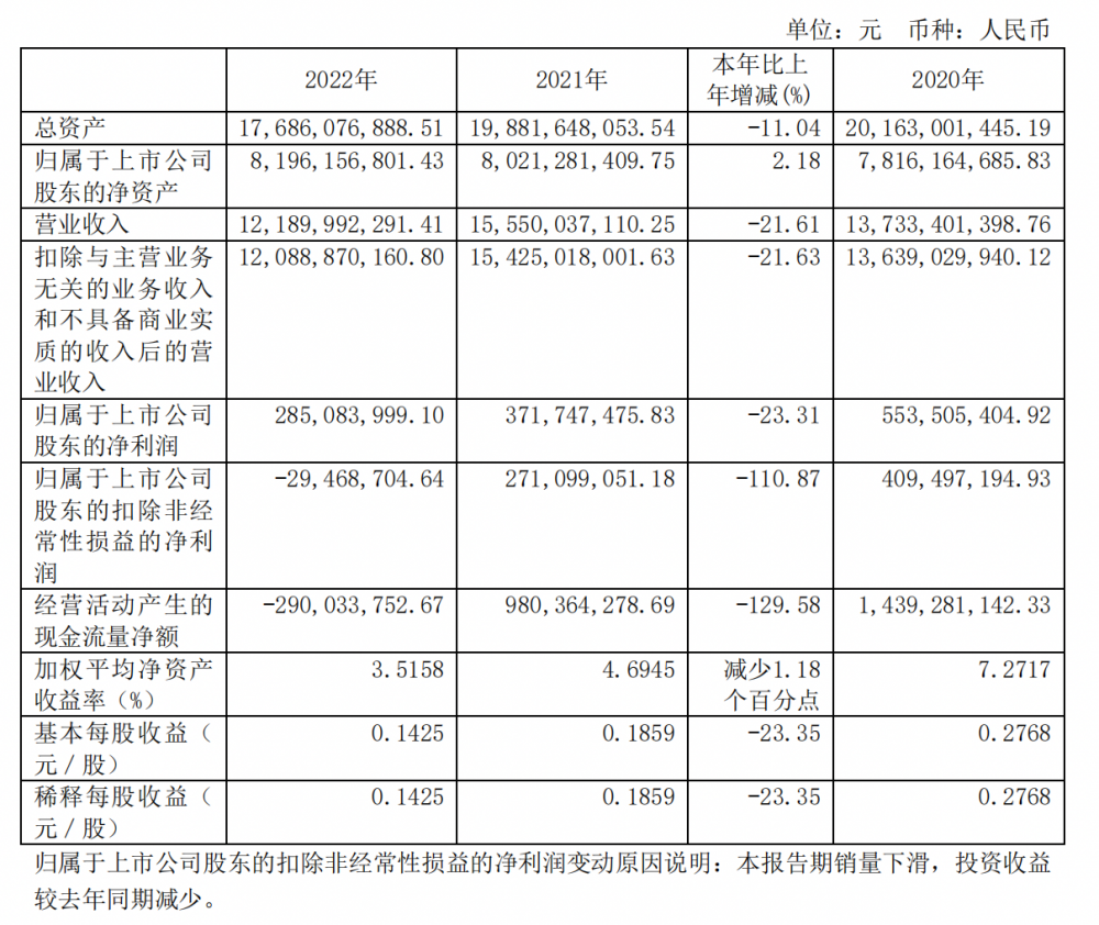 對(duì)于扣非后凈利潤(rùn)大幅下滑,東風(fēng)汽車在財(cái)報(bào)中指出,受宏觀經(jīng)濟(jì)下行的影響,2022 年商用車市場(chǎng)需求收縮,全年銷量大幅下滑;同時(shí),投資收益較去年同期減少。