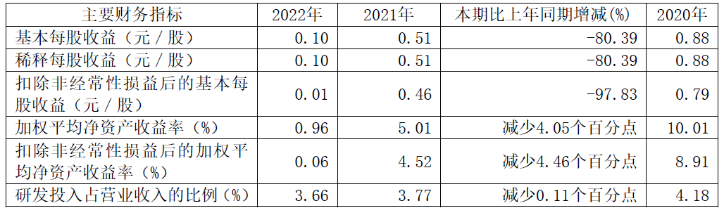 2022年,華光新材的加權(quán)平均凈資產(chǎn)收益率為0.96%,上年同期為5.01%,同比減少4.05個百分點;基本每股收益為0.10元/股,上年同期為0.51元/股,同比下降80.39%。