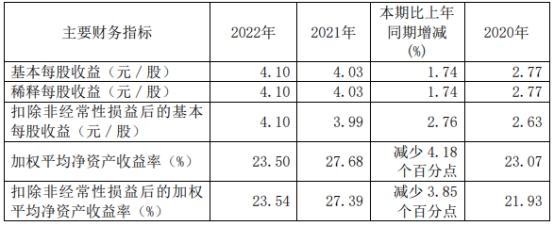 公司董事會(huì)擬定2022年度利潤(rùn)分配預(yù)案為:以實(shí)施權(quán)益分派股權(quán)登記日總股本為基數(shù),每10股派發(fā)現(xiàn)金股利12.50元(含稅),共分配現(xiàn)金股利754,146,512.50元(含稅),占合并報(bào)表歸屬于公司股東凈利潤(rùn)的30.50%。本年度公司不送股,不實(shí)施公積金轉(zhuǎn)增股本預(yù)案。上述預(yù)案尚需提交至公司2022年年度股東大會(huì)審議通過后實(shí)施。