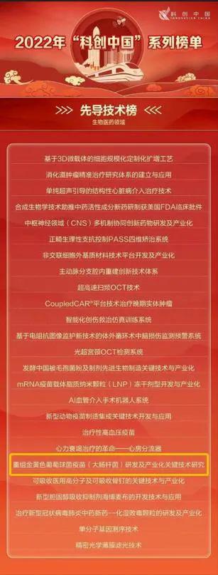 為促進(jìn)創(chuàng)新鏈產(chǎn)業(yè)鏈深度融合,推進(jìn)“科創(chuàng)中國(guó)”建設(shè)走向深入,中國(guó)科協(xié)設(shè)立了“科創(chuàng)中國(guó)”系列榜單,充分發(fā)揮引領(lǐng)示范作用,樹立產(chǎn)學(xué)研深度融合風(fēng)向標(biāo)。此次“重組金黃色葡萄球菌疫苗(大腸桿菌)研發(fā)及產(chǎn)業(yè)化關(guān)鍵技術(shù)研究”項(xiàng)目成功入選是對(duì)歐林生物技術(shù)成果的充分肯定,標(biāo)志著歐林生物在生物醫(yī)藥產(chǎn)業(yè)領(lǐng)域處于前沿水平。