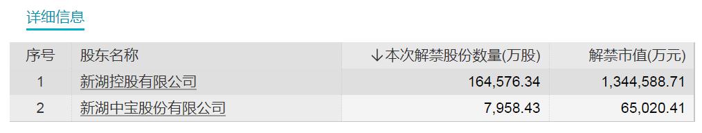 湘財股份解禁詳細信息