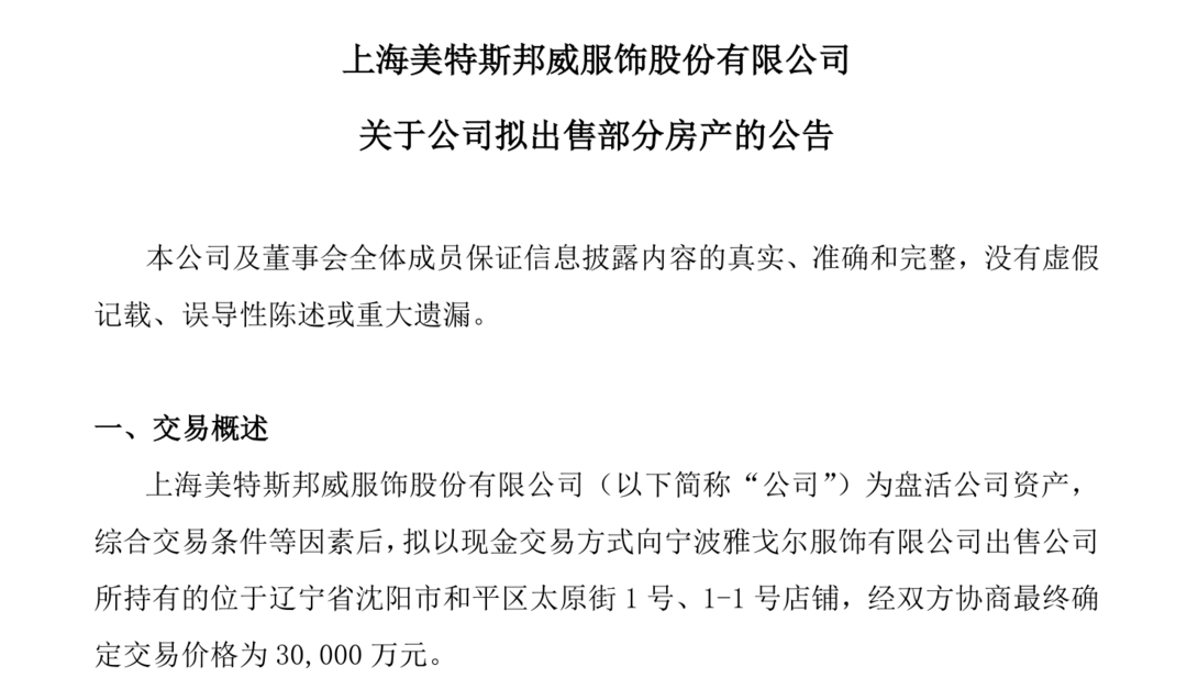 美邦服飾稱,本次交易有利于公司盤活現(xiàn)有資產(chǎn),符合公司戰(zhàn)略規(guī)劃。所得款項(xiàng)將用于補(bǔ)充公司流動(dòng)資金。