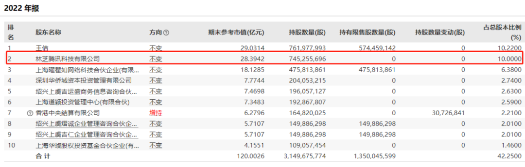 從股東情況來看,騰訊為世紀(jì)華通的第二大股東,持股比例為10%。
