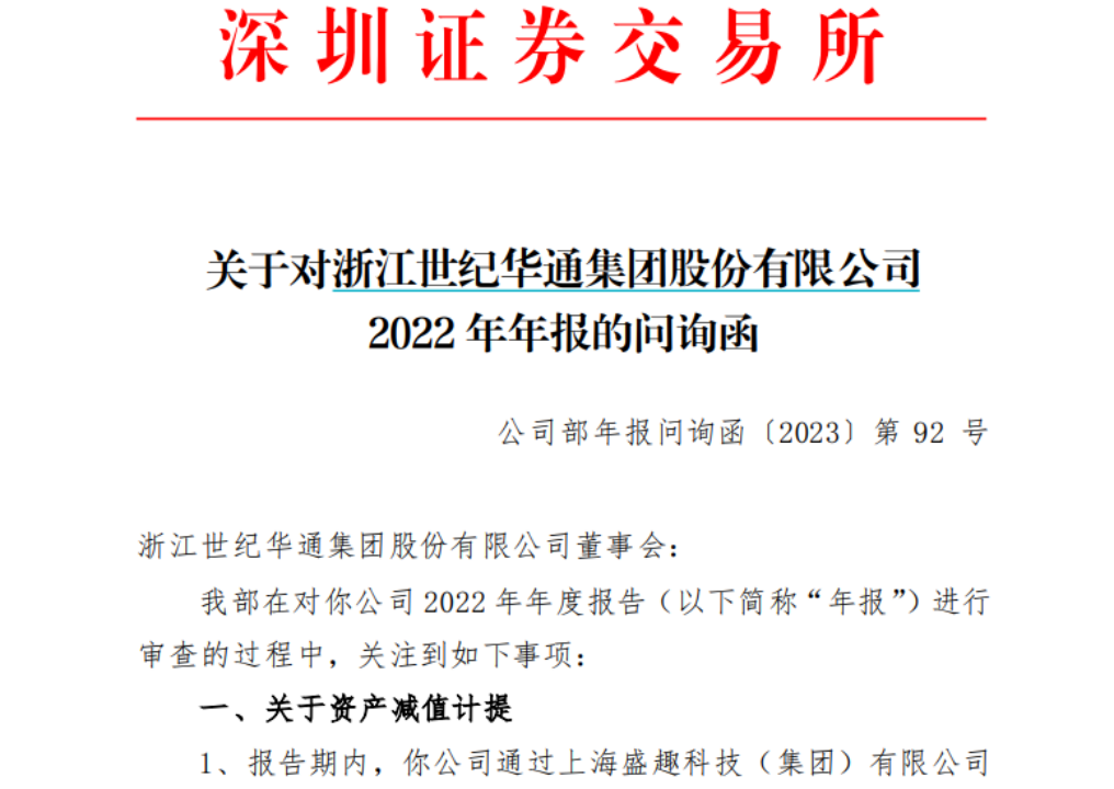 值得一提的是,5月10日,世紀(jì)華通曾收到深交所出具的年報(bào)問詢函,深交所要求其說明報(bào)告期內(nèi)商譽(yù)減值準(zhǔn)備計(jì)提金額是否審慎、合理。結(jié)合資產(chǎn)減值準(zhǔn)備計(jì)提情況,說明是否存在利用當(dāng)前市場環(huán)境計(jì)提大額減值準(zhǔn)備進(jìn)行業(yè)績“洗大澡”的行為,請年審會計(jì)師和評估師核查前述所有問題并發(fā)表明確意見。