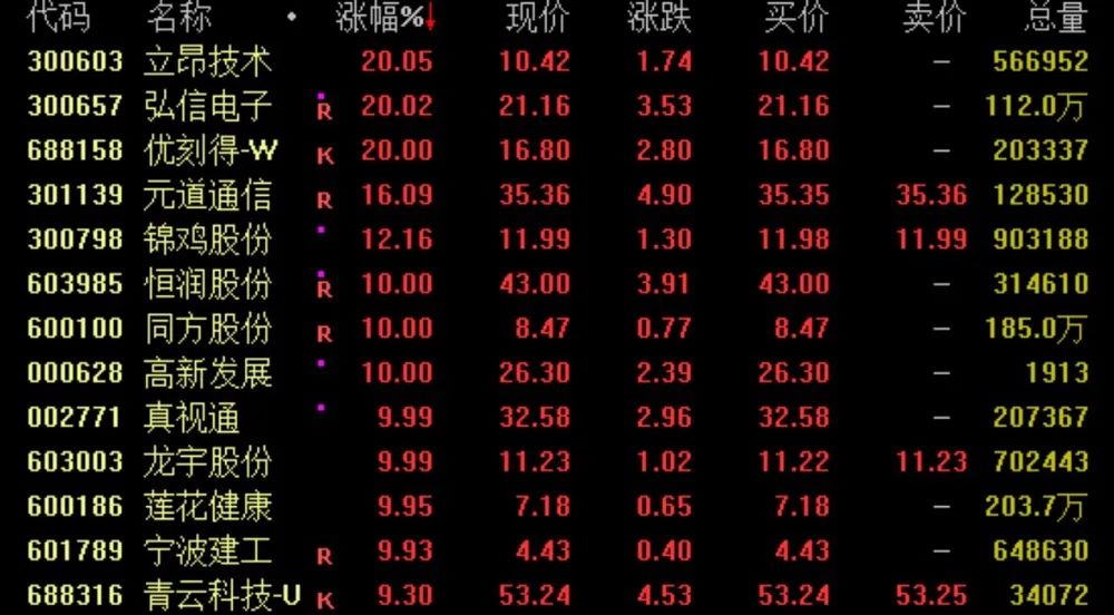 算力、數(shù)據(jù)中心概念盤(pán)中強(qiáng)勢(shì)拉升,截至收盤(pán),立昂技術(shù)(300603)、弘信電子、優(yōu)刻得“20cm”漲停,紫天科技(300280)漲逾15%,錦雞股份(300798)漲超12%,中貝通信(603220)、恒潤(rùn)股份、高新發(fā)展、真視通等漲停,分別斬獲2連板、3連板、5連板、8連板。