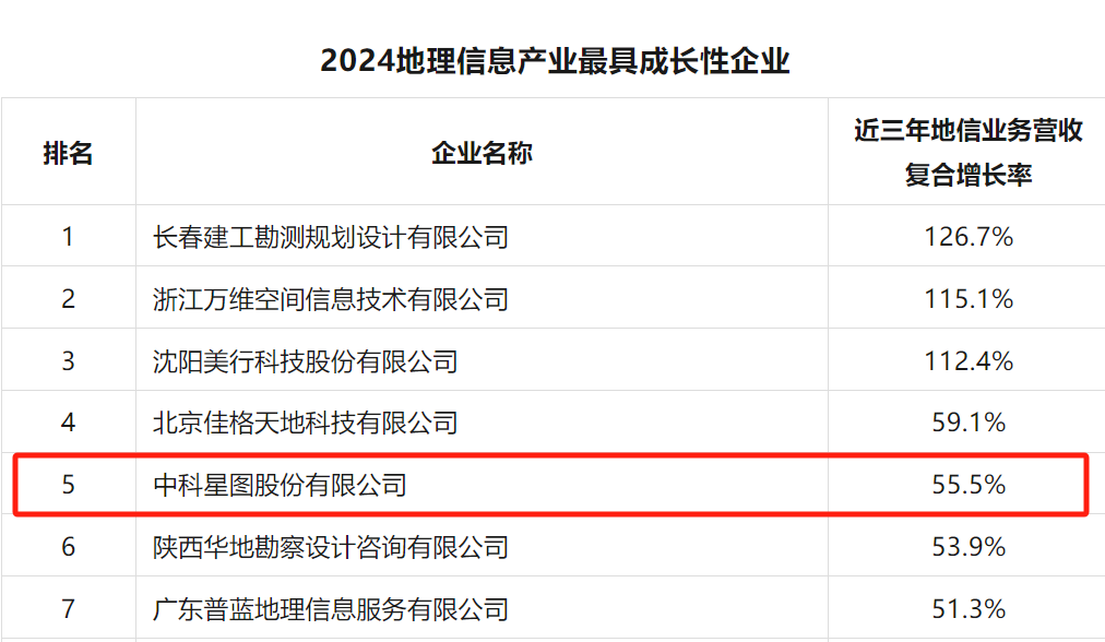(中科星圖近五年榮獲地理信息產(chǎn)業(yè)百強企業(yè)、最具成長性企業(yè)榜單排名)
