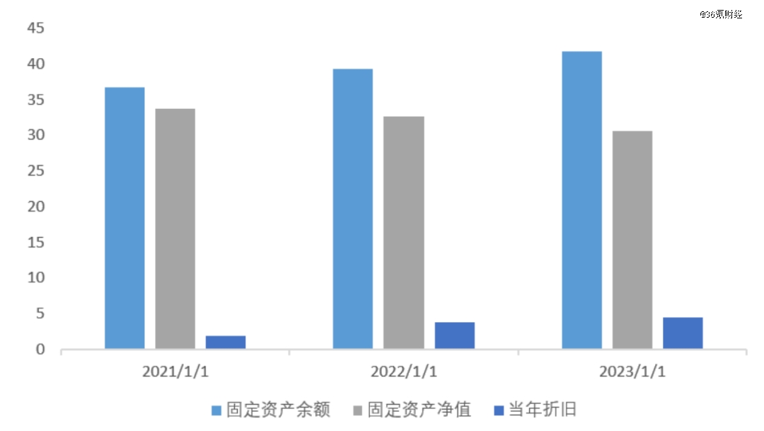 根據(jù)英諾賽科招股說明書披露,2021年底,公司的固定資產(chǎn)賬面價(jià)值就已經(jīng)達(dá)到33.71億,在隨后的2022和2023年,英諾賽科繼續(xù)投入約8億元資本開支,2023年底公司固定資產(chǎn)金額依然達(dá)到30.61億元。僅就折舊一項(xiàng),英諾賽科2021—2023年的金額分別達(dá)到1.84、3.82、4.45億元。