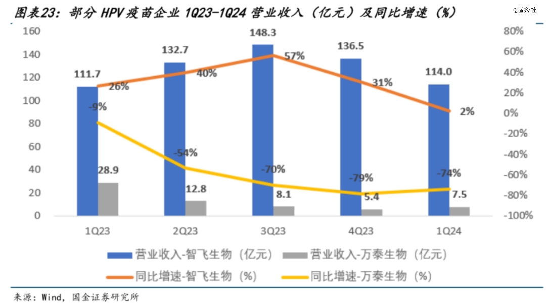HPV疫苗板塊的疲軟,從2024Q1智飛生物和萬泰生物的業(yè)績(jī)上,可能就初見端倪,萬泰生物可以解釋是產(chǎn)品降價(jià)帶來的影響,而智飛生物只錄得個(gè)位數(shù)增幅,未免有些乏力。