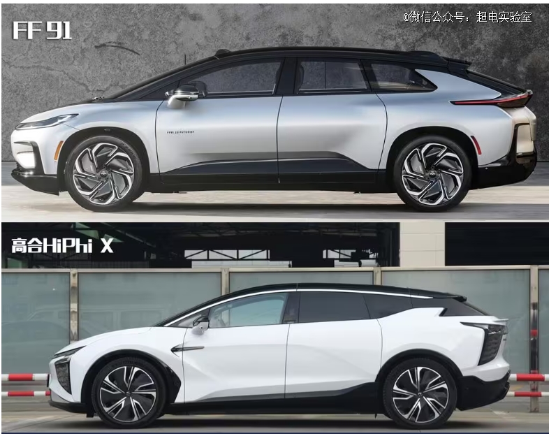 的確,如果我們仔細(xì)看高合的*款車HiPhi X和FF的車,實(shí)在是太像了。