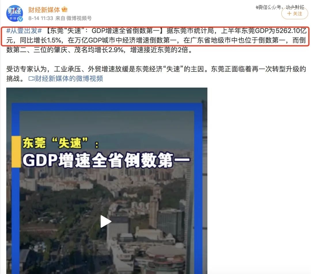 東莞上半年在萬億GDP城市中,經(jīng)濟(jì)增速倒數(shù)*。