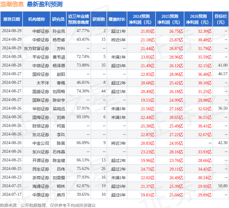 最新盈利預(yù)測明細如下: