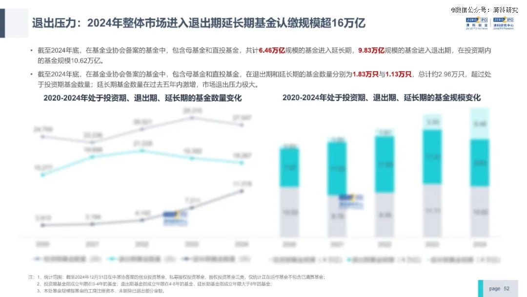 募資方面,2024年募資新募集基金數(shù)量和規(guī)模分別為3,981只,1.44萬(wàn)億元,同比下滑43.0%、20.8%。2024年下半年險(xiǎn)資、AIC、國(guó)資發(fā)起設(shè)立了多只大額基金,募資規(guī)模降幅持續(xù)收窄。分幣種看,外幣基金募資仍維持低位,全年共39只外幣基金完成新一輪募集,募資規(guī)模約為559.12億元人民幣,同比降幅分別達(dá)到49.4%、48.6%。