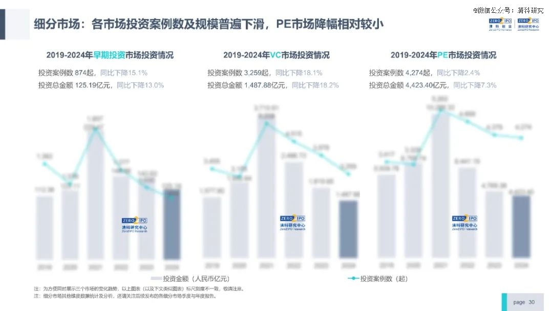 2024年中國(guó)股權(quán)投資市場(chǎng)整體延續(xù)下滑態(tài)勢(shì),但回暖跡象初現(xiàn)。