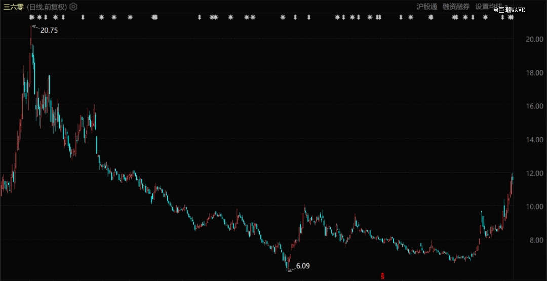 三六零的股價在公告發(fā)布后的*交易日便下跌了5.53%,至2024年2月累計下跌了約70%,在今年的“924行情”啟動后,仍只有2023年最高位的一半。