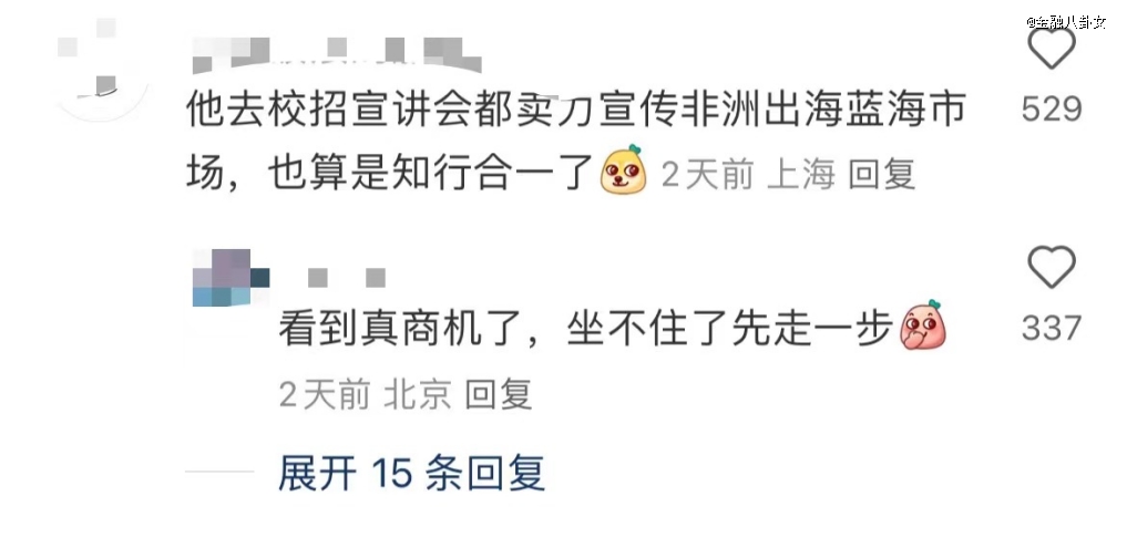 如今,這位博主已經(jīng)去非洲創(chuàng)業(yè)兩年了,她還公開了一些自己的“生財之道”,除了一些當(dāng)?shù)氐拇箜椖?,也賺過一些小錢~