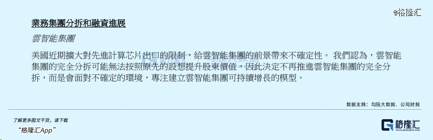 正如財(cái)報(bào)中所提到的,美國近期擴(kuò)大對先進(jìn)計(jì)算芯片出口的限制,給云智能集團(tuán)的前景帶來不確定性。因此,公司保持審慎的態(tài)度,提前研判風(fēng)險(xiǎn)并采取相應(yīng)措施,也有助于整體業(yè)務(wù)的穩(wěn)健發(fā)展,同時(shí)也反映了公司對投資人、股東負(fù)責(zé)對態(tài)度。