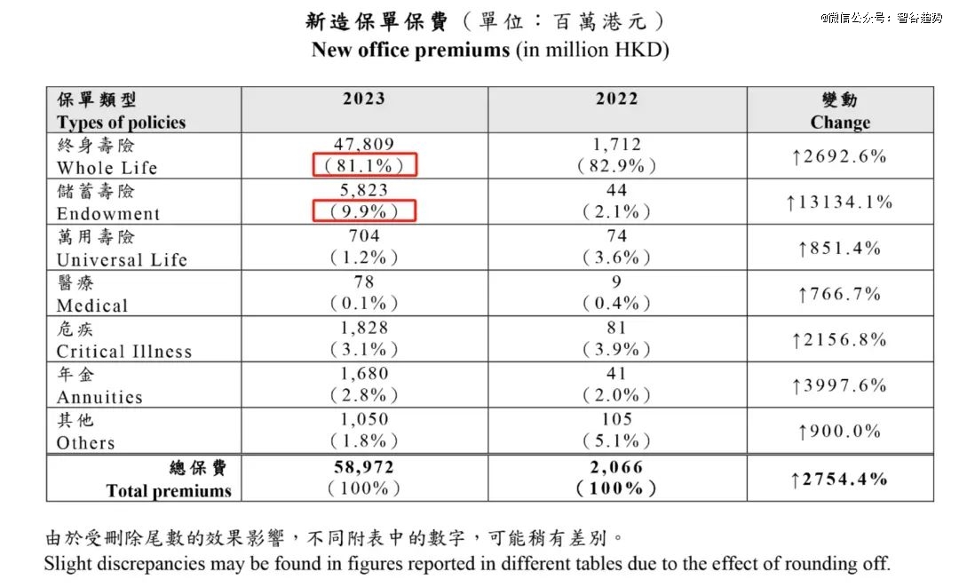 據(jù)香港保監(jiān)局統(tǒng)計(jì),2023年來(lái)自內(nèi)地的新單總保費(fèi)590億港幣,90%配置了儲(chǔ)蓄型保險(xiǎn)(包括終身壽險(xiǎn)和儲(chǔ)蓄壽險(xiǎn))。