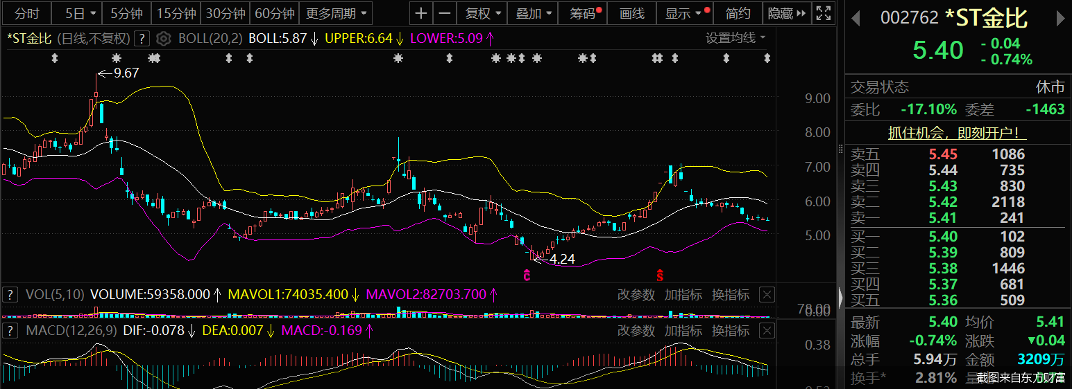 值得一提的是,一個(gè)月前,*ST金比披露易主消息后,公司股價(jià)在二級(jí)市場(chǎng)接連漲停,6月12日—17日走出了四天三板。