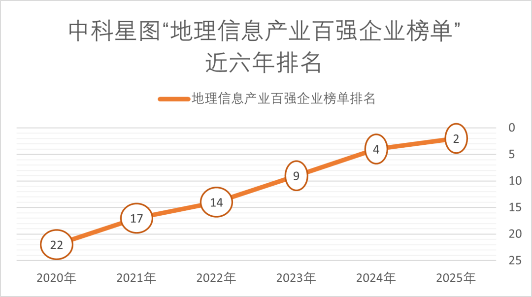 (中科星圖近六年榮獲地理信息產(chǎn)業(yè)百?gòu)?qiáng)企業(yè)榜單排名變化)