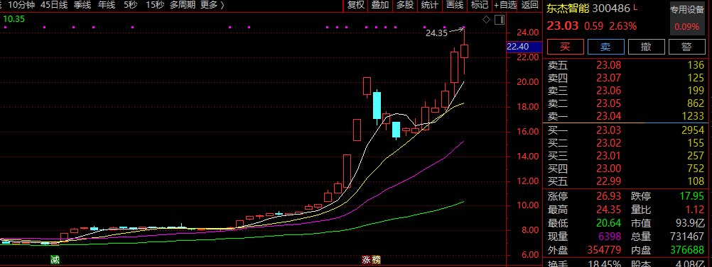 7月31日至8月5日,東杰智能股價(jià)連續(xù)大漲,期間連續(xù)3個(gè)交易日20%漲停。