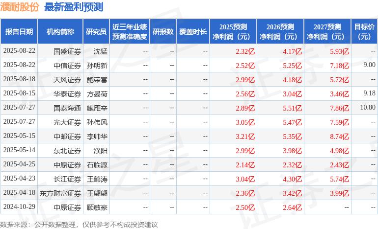 最新盈利預(yù)測(cè)明細(xì)如下: