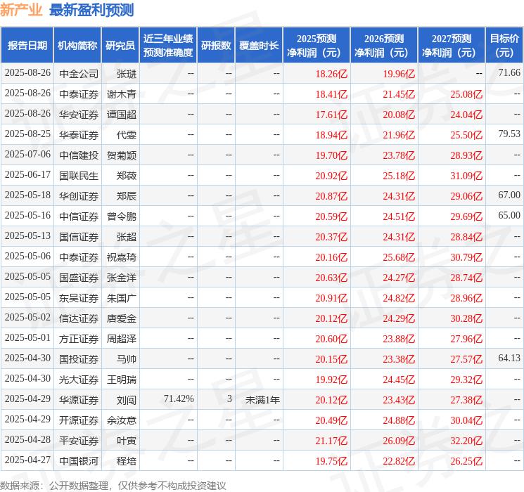 最新盈利預(yù)測明細如下: