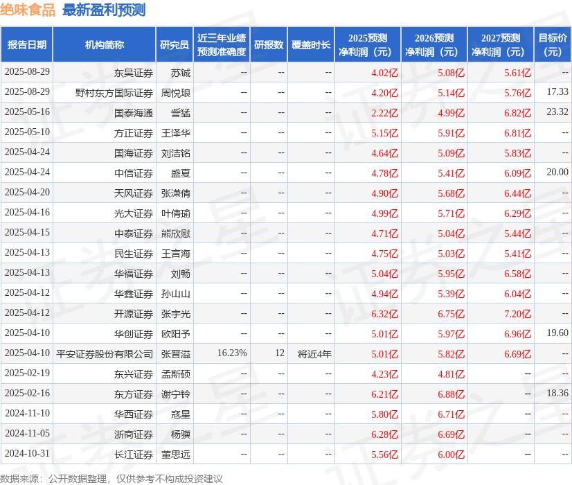 公司2025H1實現(xiàn)收入28.2億元,同降15.6%,歸母凈利潤1.75億元,同降40.7%;其中2025Q2實現(xiàn)收入13.2億元,同降19.8%,歸母凈利潤0.55億元,同比下滑57.6%。公司門店經(jīng)營仍有壓力,我們下調(diào)公司2025-2027年盈利預(yù)測,預(yù)計分別實現(xiàn)歸母凈利潤3.9(-2.4)、5.0(-1.8)、5.3(-1.9)億元,同增73.4%、26.7%、6.4%,當前股價對應(yīng)PE分別為25.0、19.7、18.5倍,公司作為行業(yè)龍頭,調(diào)整門店經(jīng)營策略,鹵味行業(yè)集中度有望進一步提升,美食生態(tài)圈企業(yè)有望逐步恢復(fù),維持“增持”評級。