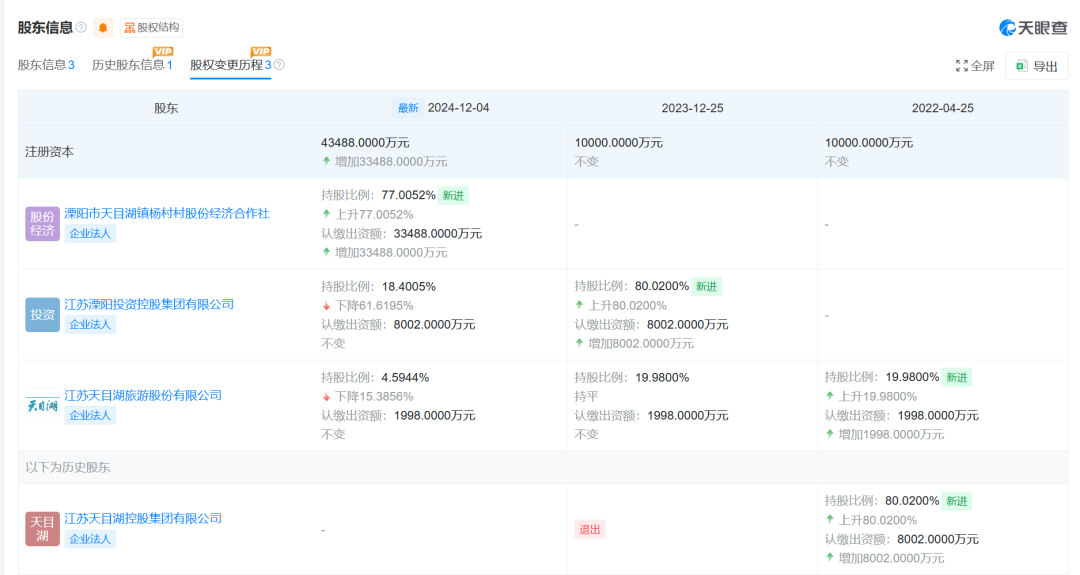值得注意的是,參與其中的A股上市公司天目湖(603136.SH)早在2024年8月就發(fā)公告要為該項(xiàng)目增資近1.8億元,但至今仍未履行。而項(xiàng)目中的國資大股東早在10個月前就已大幅撤出,持股從超80%將至約18%。