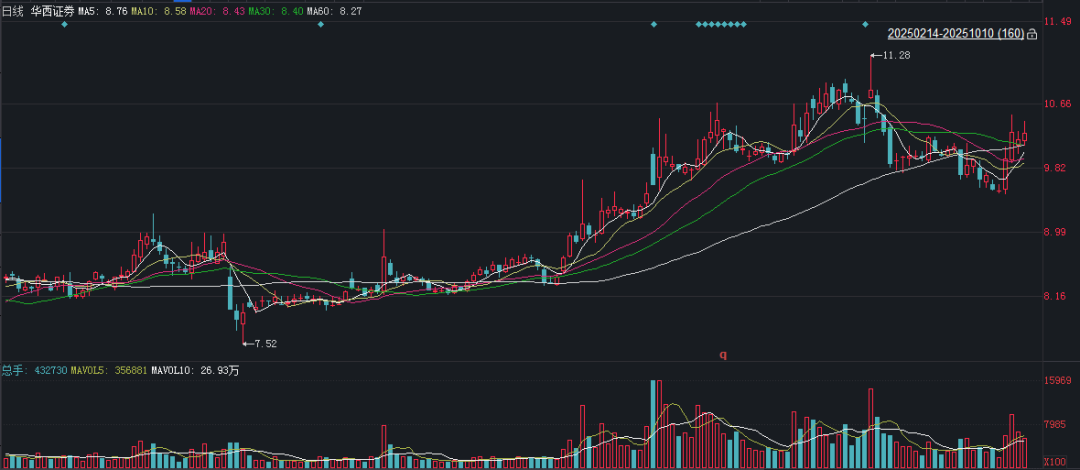 二級市場上,截至10月10日收盤,華西證券上漲0.79%報(bào)10.26元/股,最新市值269.33億元,今年來公司股價(jià)累計(jì)上漲24%。