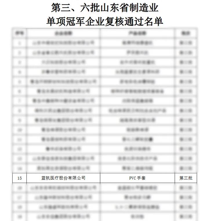 近日,山東省工業(yè)和信息化廳正式公布第三、六批山東省制造業(yè)單項冠軍企業(yè)復核通過名單,藍帆醫(yī)療(002382)作為第三批制造業(yè)單項冠軍企業(yè)順利通過復核,再次獲得省級權(quán)威認可,彰顯了公司在細分賽道的核心競爭力與行業(yè)引領(lǐng)作用。